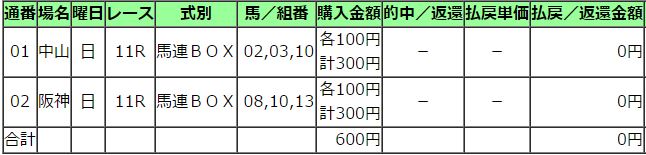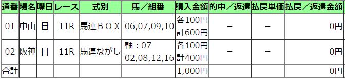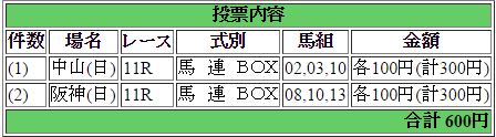 今日の競馬予想 中山11R 馬連BOX6ー7ー9ー10 阪神11R 馬連流し7ー2、8、12、16 人気順につまみ食い。