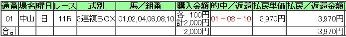 今日の競馬予想 中山11R AJCC 三連複BOX1ー2ー4ー6ー8ー10 今年初予想ですが7と13無視していいのかどうか。