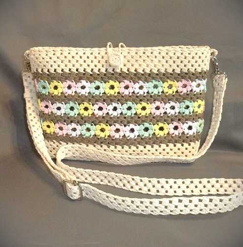 先月完成していた、サコッシュを紹介し忘れていました。モチーフ編とブレード編みをミックスしてみました。大きさは、長財布が横に入るくらいです。持ち手は、送りカン(移動カン)を付けて長さを調整できるようにしました。今回は、蛙屋さんの「あるあみ」の新色を使って編んでいます。「かるあみ」だけあって、とても軽いサコッシュになりました。