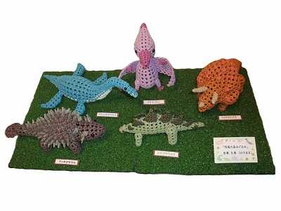 花冷えのあと、急に気温が上がって初夏の陽気になってきました。急いで、半袖を引っ張り出しています。ゴールデンウィークももうすぐですね。今回は、ふたたび恐竜シリーズです。背中に無数の角を持つ「アンキロサウルス」を作ってみました。あれこれ試作を5回繰り返し、やっと形になりました。無数のとげを、四つだたみ編みで表現しようとあれこれ試してみたのですがどうやってもうまくいかずに、四つだたみ編みは却下。今回は、バンドを貼り合わせ角を作り、地道に穴に差し込む、という言う、私の苦手なボンド作業を採用しました。。。今まで作った恐竜を並べてみました。アンキロサウルスプテラノドンプレシオサウルストリケラトプスステゴサウルスまだ5種類。少しずつ増やしていきたいな。