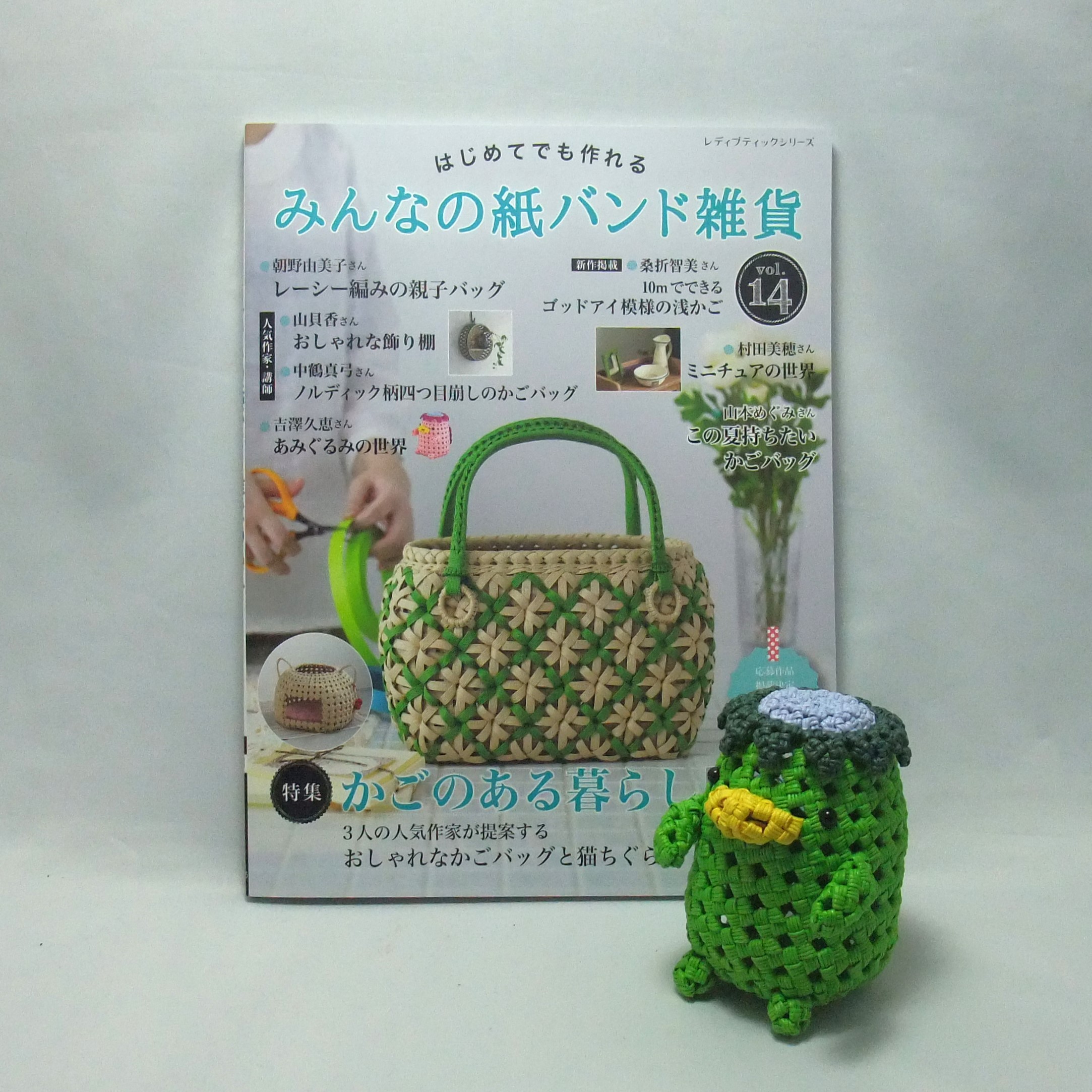 「みんなの紙バンド雑貨VOL.14」新刊本のお知らせ4月30日、本日「みんなの紙バンド雑貨Vol.14」がブティック社さんより発売されます。海外トピックスにはパリ♪見本市や手芸店、文房具屋さんが紹介されていて読んでいるだけで、旅をしている気分になりますよ。今回私は、カッパあみぐるみを提案させていただいています。私も気に入っている作品です。お皿の部分と背中の甲羅の作り方がポイントです。楽しんで作っていただけたら嬉しいです。・・・・・・・・・・・・・・・・・以下、ブティック社様HPより引用人気作家が提案する雑貨やかごバッグが大集合!初心者でも楽しめる人気講師の簡単レッスン、猫ちぐら、10mでできるかご、繊細なミニチュアの世界やあみぐるみの世界、この夏持ちたいかごバッグの提案や新素材の紹介など、盛りだくさんのテーマで紙バンド手芸の魅力が満載の一冊。オールカラーのわかりやすい写真解説で作り方を紹介。
