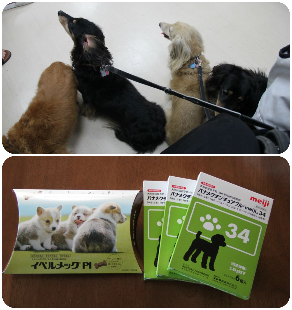 7/9朝の体重:プチ4.6kg大地5.2kgメレ4.5kgミント:お休み********************************************************今年も6月~12月分のフィラリアのお薬をもらってきたよ。大ちゃん、ドキドキが止まらなかったねおうちに帰ったら美味しいお薬の予感におめめキラキラミントは5.7kgで今年は1つ大きいサイズになっちゃった~6月分をパクッと完了プチ:『もう1つ食べてもいいよ』大地:『ボクも』いやいや、毎月1つずつでお願いしますよプチ大地メレミントに応援クリックよろしくお願いします( 別ウィンドウが開ききるまではそのままでお願いしますm(_ _)m )Instagram登録してみました~プチだいメレミンすたぐらむ 画像をクリックすると移動します今までのハンドメイド作品をまとめました 画像をクリックすると今までの作品をご覧いただけます*******************************************************