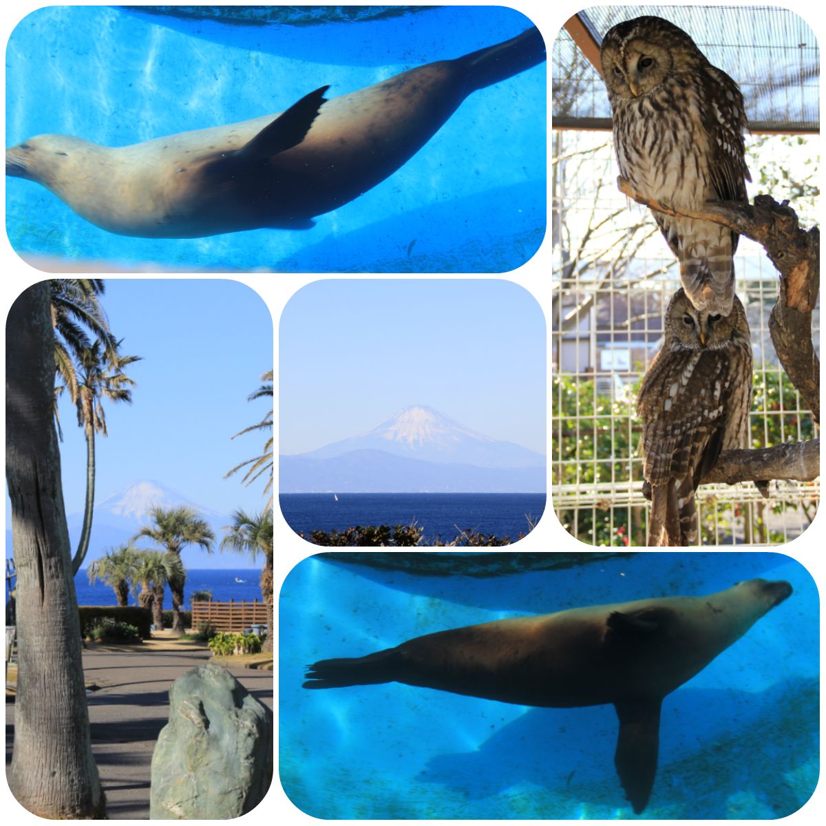 奥には『切りかぶの主』のフクロウさん、あしか島では気持ちよさそうに泳ぐアシカさん。