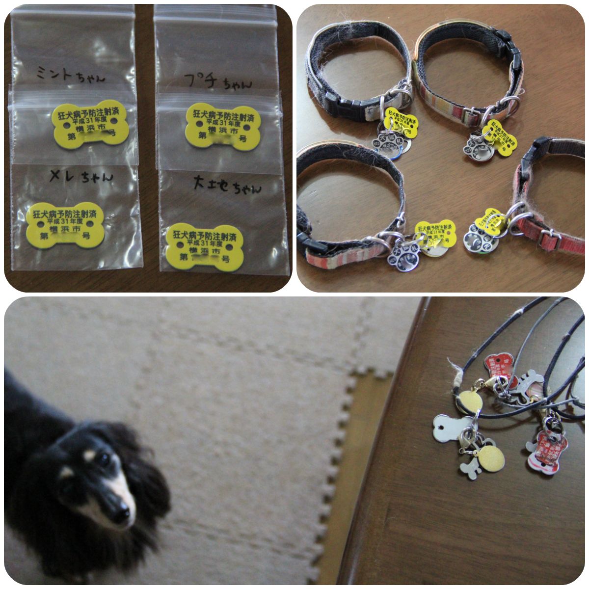 (古い注射済票も迷子札と一緒におうちにいるときつけてるよ)