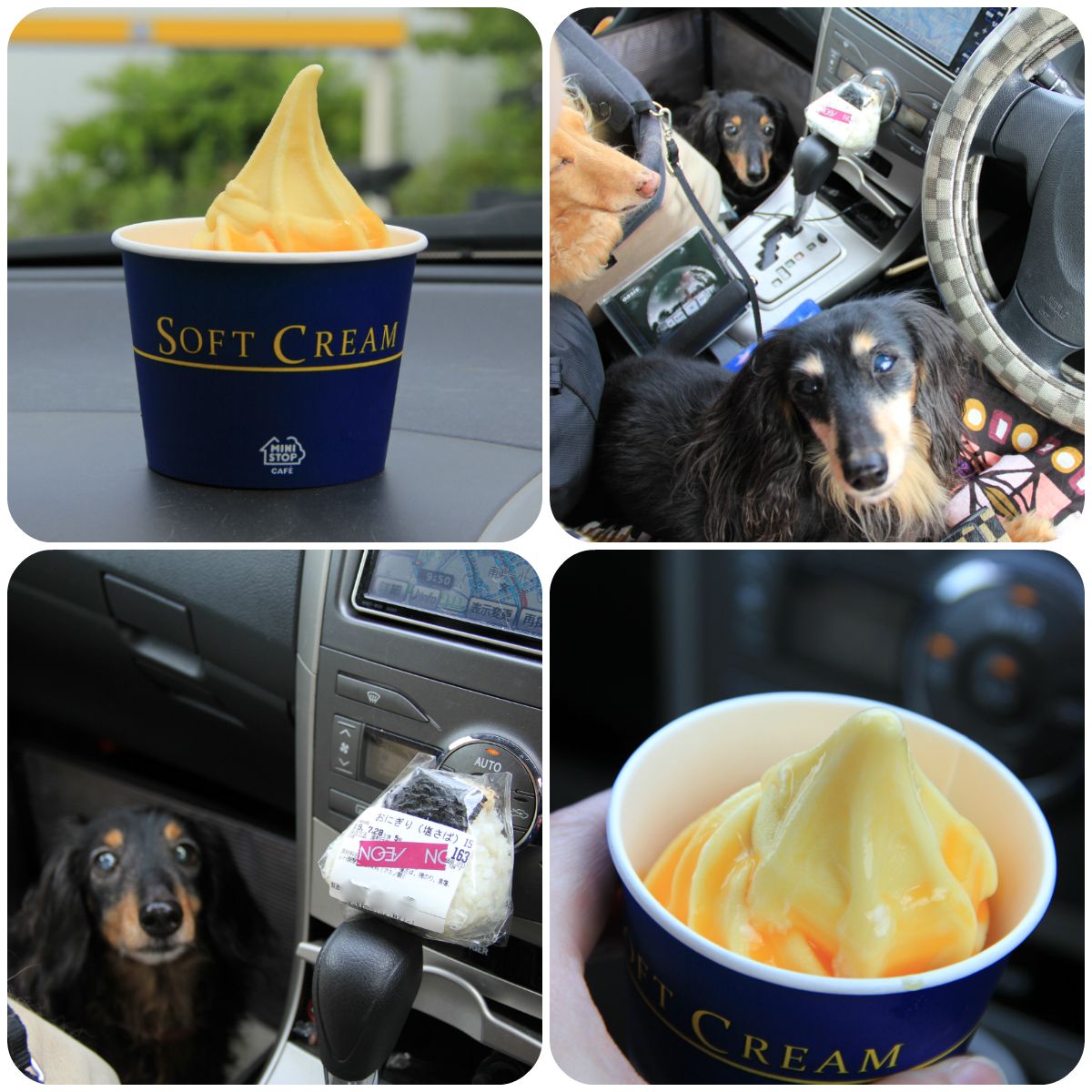 沖縄パイン&マンゴーソフトと塩さばおにぎりいただきまーす