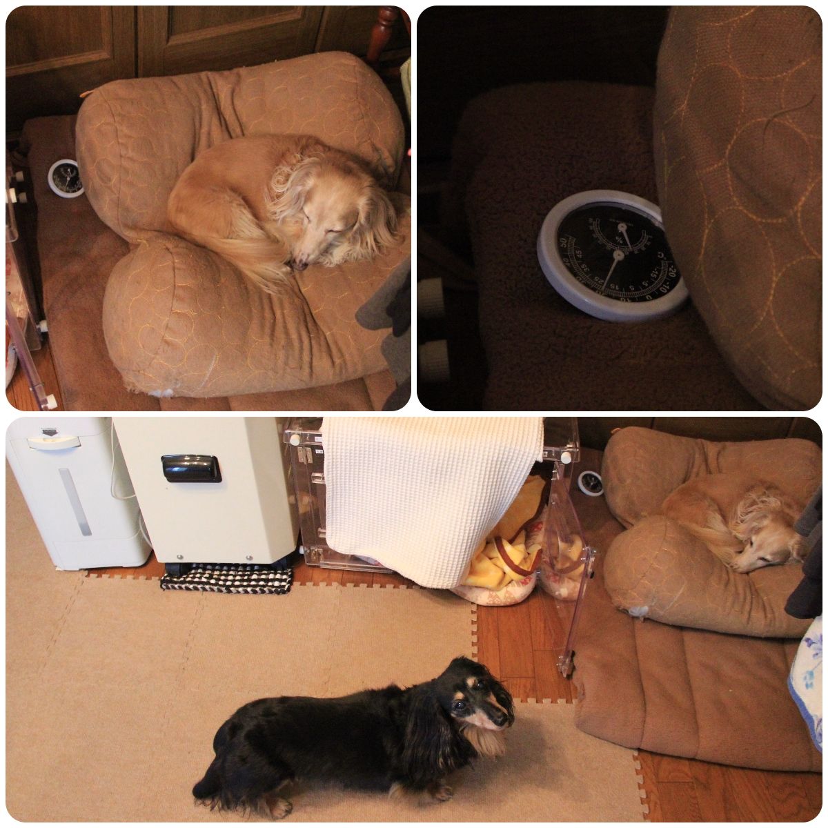 あれれ、酸素ハウスの上に置いておいた温湿度計が移動してる