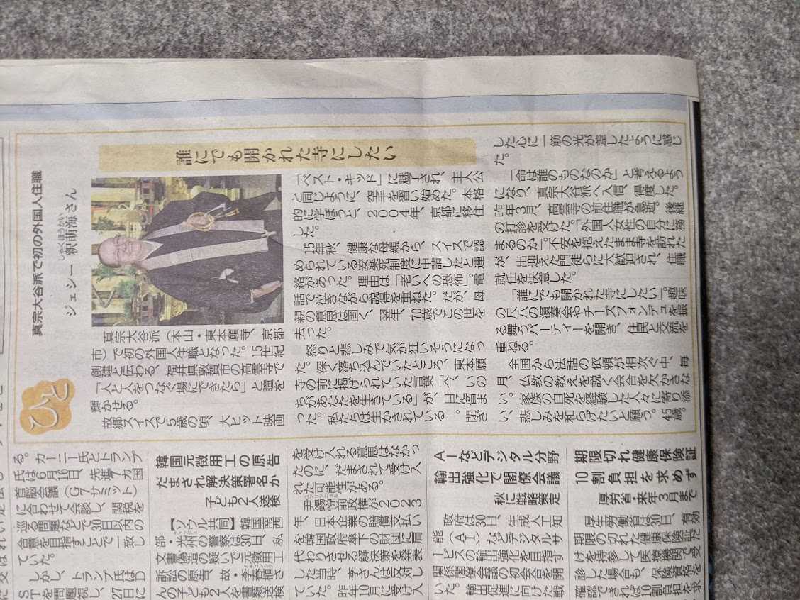 スイスから来た外人が日本のお寺の住職になったそうで、これは珍しいのではなかろうか。 その人は女性で45歳だそうで、約20年前に空手を習おうと日本に来たそうだ。そして実の母親が安楽死を望んで、幾ら電話で説得してもスイスで自死したそうで、それから命を考えるようになり、大谷派に入信したのが始まりだそうだ。 こんな外人の法話は面白いかも知れないね。