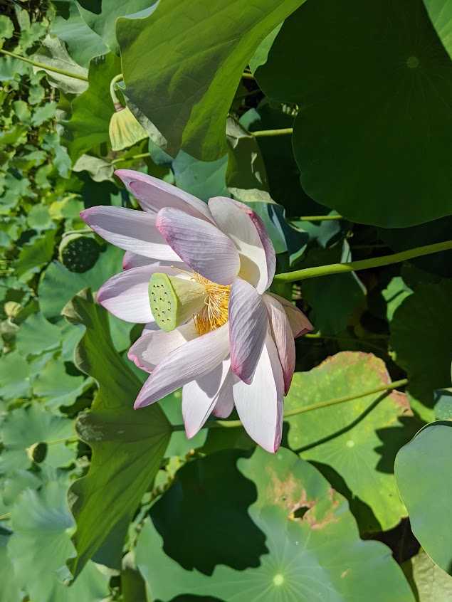 7月22日、犬のマルルの定期健診に或る病院に行った。女房がマルルを連れて病院に入ったから、その近所の蓮池を見に行った。 丁度満開で、約500坪程の池に沢山の蓮が咲いていた。当然水が張ってあるのだが、中に散歩用の木の道が整備されており、数名の方が蓮を見るため、中を歩いていた。 私も、蓮を見るため、歩き回った。