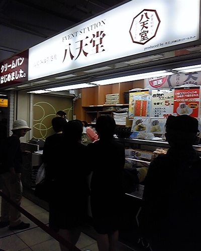 会社で残業の折、同じく残っていた庶務の女性のSさんから美味しいパンを夜食?代わりにいただき御馳走になった。品川駅エキナカで今話題のクリームパンとのこと。はなまるマーケットで、「ぐっさん」の愛称で親しまれている山口智充さんが紹介してから急激に有名、大人気となったと。そして広島県三島市にある「八天堂」さんのクリームパンとのこと。 一昨日、横須賀に出張の帰りに品川駅で山手線に乗り換える機会があり 立ち寄ってみた。店の前は長蛇の列。ほとんど老若(男)女達ばかりであったが意を決して列の後ろに並んだのであった。 八天堂とろけるクリームパン。 生クリーム・カスタード・抹茶・小倉・チョコ の 5種類。 そしてすべて1個200円。 自宅への土産にカスタードと生クリームをそれぞれ3個購入。 会社に戻り、冷蔵庫に保管し帰宅時持ち帰ったのであった。 昔風のしっとりパンに、生クリームベースのやわらかクリーム。冷蔵庫で冷やしたほうが旨い、要冷蔵のクリームパン。包装も和紙による古風な感じでこれが良い。 カスタードと生クリームの差がよくわからなかったが、 どちらかといえばはカスタードが私には上。 甘さもほどほどに抑えられており、大きなカスタードの塊が薄皮に包まれている パンというよりケーキ。 ちなみに品川駅だけでなく、下記店舗でも取り扱いがあるとのこと。http://www.noren-kai.com/hattendo/tenpo.html 期間延長で今月いっぱい品川駅で買えるので、機会があったらまた買おう。 今度は、抹茶・小倉・チョコに挑戦か。