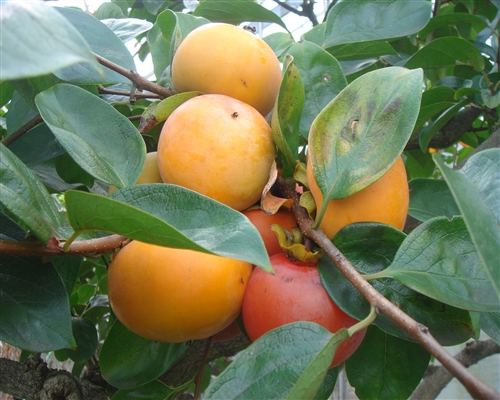 妻が今年は干し柿作りに挑戦しています。我が家の前のSさんの奥さんが2Fのベランダで挑戦しているのに刺激を受けたのでしょうか。もちろん干し柿は、ドライフルーツの一種で、柿の果実を乾燥させたもの。先週末に我が家の柿の実を収穫。へたに柄と枝の一部の付いた柿の実の皮を剥き、枝と柄のT字型の部分を農園で使用している紐の縒り目の間に挟み込んでいます。1本の紐に7~8個の皮を剥いた柿を取り付けています。そしてこれをU字型にし、何回も固定し、雨を避けるため、柿を挟んだ紐を洗濯用物干しにつるし、家の軒先の屋根の下に吊るして、乾燥させているのです。まさしく、吊るし柿(つるしがき)状態です。しかも鳥に突かれぬように白い網袋で包んでいるという念の入れようです。本来の干し柿に用いられる柿は渋柿であり、乾燥しやすいよう、果実が小型の品種が用いられることが多いのです。乾燥させることにより、渋柿の可溶性のタンニン(カキタンニン)が不溶性に変わって(渋抜きがされて)渋味がなくなり、甘味が強く感じられるようになるとのことです。我が家の柿はおそらく『富有柿』であり、甘柿ですので 渋柿と違って渋抜きをせずに直接食べらますが、糖度そのものは渋柿のほうがはるかに高くなるとのことで、甘柿を干し柿にしても渋柿のようには甘くならないことも予想されますがどうなのでしょうか?。妻も干し柿作りに熱く燃えていますので、白い粉が表面一杯に拡がり甘く上品な味になること間違いなし!!!なのです。わが庭の 柿の実吊るす妻の背が あかねに染まる 晩秋(あき)の夕暮れ -------詠み人知らず-------
