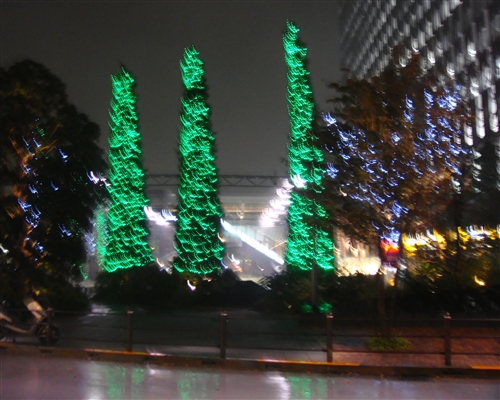 私の勤務する大崎駅の西口にあるTHINKPARK TOWER ビルも今年も植栽に色豊かなイルミネーションが輝き出しました。ここはTHINKPARK ARENAと呼ばれる緑の広場なのです。この多目的スペースでは、各種イベント等の催しが行われています。またフットサル等のスポーツ用コートとしても使用できるので、スポーツを通じた様々なコミュニケーションが生まれる場になっているのです。青、緑のLEDランプが輝いています。昔は輝度が小さかったため電子機器の動作表示灯などの屋内用途に限られていましが、赤色や黄緑色の高輝度タイプのものが実用化されてからは屋外でも電球式に変わり電光掲示板、道路信号さらに駅の発車標などに使用されるようになって来ています。緑のツリーに緑のLEDだけという粋な計らいです。暗闇に輝く緑色はLEDならではの輝きです。緑の光を見ると草・木、新芽・若葉、野菜、森林、自然と想いを巡らすことが多くなったと感じている『アラカンオジサン』です。