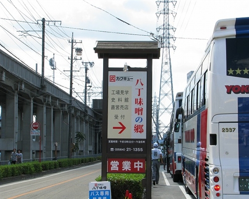 『八丁味噌の郷』に到着。駐車場には大型観光バスが何台も駐車していた。一般車の駐車場に何とか駐車することが出来た。やはり何処も駐車場確保との闘いの旅行である。その闘いに勝つためには『手前味噌』ですが早朝出発が鍵なのです。2006年放映のNHKの連続テレビ小説「純情きらり」の舞台はこの会社がモチーフ。その影響もあって、連日たくさんの観光客が足を運ぶ人気スポットとなっているのだ。名古屋の食文化のキモと言うべき赤味噌。味噌カツ、味噌煮込みうどん、味噌田楽、味噌どて煮等々、この地域の料理は赤味噌が味の決め手となっているのだ。赤味噌とは京都の白味噌に対する言葉で、まさしく見た目が赤っぽい味噌。もうひとつ、味噌には原料による分類があり、米味噌、麦味噌、豆味噌、調合味噌があるのだ。豆味噌は赤味噌の代表的な種類であり、生産が東海地方にほぼ限られている独特の調味料なのである。この豆味噌の代名詞が八丁味噌。徳川家康生誕の岡崎城から西へ八丁離れた旧八丁村の味噌蔵で作られたことが、名前の由来と。そして、岡崎八丁味噌の伝統を江戸時代から守り続けているのが「カクキュー」と「まるや」の2大ブランドなのである。 受付で見学の申し込みをし、待つこと15分。中年?の女性社員がマイクを片手に案内をしてくれたのだ。目玉は明治40年築の味噌蔵を活かした史料館・八丁味噌の郷。マネキン人形たちが昔の仕込みの風景を再現。さらに工場内の通路を経由し、実際に使われている味噌蔵などをグルリと一周。「白味噌と赤味噌の違いは大豆の調理法。大豆を煮て作ると白味噌に、蒸して作ると赤味噌になる」「木樽の中には味噌6t分が仕込まれ、30万人分の味噌汁を作ることができる」「樽の上に重しとして積み上げられている石の重量は3t。石は江戸時代に河原で拾ってきたものを今も使っている。ピラミッド同様の揺れに強い積み上げ方で、地震で落ちたことはこれまで1度もない」と様々なウンチクを聞かせてくれるこのベテラン?ガイドさんの語りも軽妙なのであった。最後は試食コーナーへ。八丁味噌と赤だし2種類の味噌で作った味噌汁を紙コップに入れてもらい飲み比べ。八丁味噌の方が濃い旨味が秘められているとみんなの意見。私には良く解りませんでしたが・・・。みやげコーナーで、各自 あれもこれもと土産を購入。こういう時の我が女性軍のバイタリティーには何度見ても今更ながら感心したのであった。 そしてこの日もKさんのお嬢さんのよく利用する鮮魚の美味しい店で反省会を行ったのであった。それにしても、このお嬢さんはKさん一家の和やかな雰囲気と両親の会話を見事に『円』く纏め、一家の『花』になっていることが、Kさんご家族の会話の中から垣間見ることが出来るのであった。来年も是非参加して欲しいが、来年はもっと優先する事が待っているかもしれない・・・。 ----まだまだつづく-----