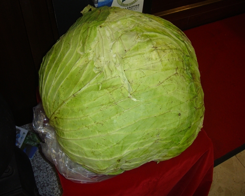 会社の近くの飲み屋の店先でジャンボキャベツを発見しました。 直径45センチ以上ある大物です。重さはどのくらいあるのでしょうか。15kgは超えているのではないでしょうか。持ち上げてみたかったのですが店員に叱られるといけませんので。北海道の海産物を食べさせてくれる店ですので、このジャンボキャベツも北海道産なのでしょうか?上の写真では大きさが解らないのではと持っていた傘の柄と一緒に撮影してみました。70cmの長傘の柄です。ロールキャベツを作ったら幾つ出来るのでしょうか?いや、鶏を丸ごと一羽包んだロールキャベツができそうでした。 今日はこれから『香嵐渓』&『小原』へ紅葉&四季咲き桜の見物へ出かけます。メンバーはペルー&スペイン旅行の仲間達です。渋滞を避ける為の早朝出発ですが・・・・・・・・????。