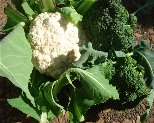 我が農園のブロッコリーとカリフラワーを収獲しました。花野菜の代名詞、ブロッコリーとカリフラワー両者はいわば『兄弟』なのだそうである。紀元前より、地中海沿岸で古代ローマ人が食用としていた野生のキャベツから、まずブロッコリーが派生したのだと。そのブロッコリーがさらに突然変異し生まれたのがカリフラワーと考えられていると。つまりブロッコリーが『兄』、カリフラワーが『弟』。両者は栄養価が極めて高く、美味しいことから15~16世紀にはヨーロッパ各地で食べられるようになったとのことである。日本への伝来は、明治初期、本格的に普及したのは昭和40年頃から始まった「サラダ」に代表される食生活の洋風化がきっかけとのこと。当初は栽培技術の向上などからカリフラワーが消費を伸ばし、一方のブロッコリーはマイナーな存在。しかし緑黄色野菜の栄養価が認識され始め、昭和55年(1980年)以降は立場が逆転し、ブロッコリーの生産量が飛躍的に高まり、「栄養野菜の代表格へ」その影響で現在のカリフラワーの最盛期の約半分になっているとのことである。 【スタイル アサヒ 12月号】より抜粋私はブロッコリーよりカリフラワーの方が好きであるが、農園仲間の姉たちの農園ではカリフラワーは栽培していないのである。そして、花蕾が大きくなりはじめたカリフラワーは、霜による黒変と日焼けを防ぐため、葉を寄せ集めて鉢巻をしてやったのである。