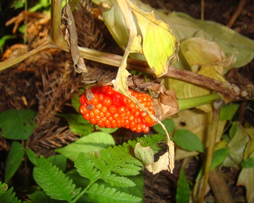 香積寺で紅葉を堪能し、巴川沿いの遊歩道を足助城に向かって歩く。女性軍から足助城への坂道はきついとの声があがりSさんと私で足助城までの坂を登り、車で下まで迎えに来ることを決断。我々二人はどこまで女性群に優しいのであろうか。坂の途中で、今年も道沿いの山の中の『まむし草』の実をSさんが発見。霜にやられて、葉っぱはしおれていたが、赤い実はしっかりしていた。グロテスクだが、秋を彩る実の一つ。おいしそうだが、毒とのこと。坂の途中から、先ほど登った飯盛山の姿が。雲一つ無い絶景。そして漸く足助城の入り口まで辿り着く。 2台の車を走らせ、下で待つ過保護組?を迎えに行く。そして足助城の入場券300円を買い入城。実は昨年ボランティアで足助城のガイドをしてくれた私と同姓のKさんが今年も我々の訪問を朝早くから待っていてくれたのであった。Sさんがネパール土産を渡すと、Kさんも我々のために自家製の大量の梅干しをプレゼントしてくれたのであった。1年ぶりの再会を喜び合う。それにしても相変わらず明るく元気なオバーチャンである。南ノ丸の方に向う。埋められてしまっているが、手前下には堀切が存在していたとのこと。斜面の階段のような所は数年前の豪雨で崩れた壁を修復した跡なのだ。そして山の上には南物見台の姿が見えた。写真の左には真っ赤っかな紅葉が真っ青な青空を背景に光り輝いていた。毎年この紅葉の赤に合うためにこの地を訪れる私なのだ。4年連続の訪問。今年は去年の黒ずんだ赤とは異なり見事な赤で私を迎えてくれたのであった。香嵐渓周辺で、最も鮮やかな赤い紅葉を今年も堪能。城内最高所には、高櫓と長屋の2棟が再現されていた。これも発掘に基づいて建てられたものとのこと。足助観光協会では、観光ボランティア・ガイドを組織しているのだ。香嵐渓、足助城、古い町並みや歴史などを、ガイドブックだけでは得られないエピソードなどを交えて紹介してくれるのだ。高櫓まで案内してくれたボランティアのお二人。今回は先輩格の女性が足助城の成り立ちについて説明してくれたのだ。足助城から城下を見渡すと一筋の道も見えた。ボランティア・ガイドの方の話では、眼下に見える道はかつての街道で、武田軍もあの道を通って足助城へと攻め込んだとか。歴史を感じることが出来たのであった。ホームページそしてガイドのオバーチャンの話によると、足助城は平安時代~南北朝時代にかけて足助に勢力をもっていた『足助氏』の築城で足助七城のひとつに数えられる城。足助城は、発掘調査に基づき整備された、全国でも初めての試みの山城とのこと。足助城は、標高301mの真弓山の山頂を本丸として、四方に張り出した尾根を利用した、連郭式の山城で、真弓山は足助の町並みを眼下に 見下ろす要衝の地とのこと。足助城は、「真弓山城」とも呼ぶが、「松山城」「足助松山の城」とも呼んだようだ。鎌倉時代に足助氏が居城したという、「足助七屋敷(足助 七城)」の一つとも伝えられとのことだが、発掘調査では、この時代の遺物は発見されず、現在残された遺構は15世紀以降に鈴木氏が築城した跡と考えられていると。鈴木氏は、戦国時代に西三河山間部に勢力をもっていた一族。そのうち、足助の鈴木氏は、忠親→重政→重直→信重→康重と5代続き、初代 忠親は、15世紀後半の人と。16世紀に入ると、岡崎の松平氏との間で従属離反を繰り返し、永禄7年(1564)以降は松平氏のもとで高天神城の戦いなどに武勲をあげたと。そして、天正18年(1590)康重のとき、徳川家康の関東入国に従って、足助城を去るが、間もなく家康から離れ、浪人したと伝えられているとのことであった。その流暢な説明の知識と記憶力?に感服。そしてお手製の梅干しを土産に準備してくれたKさんと、来年の再会を約束して足助城を後に妻籠、馬籠に向かったのであった。