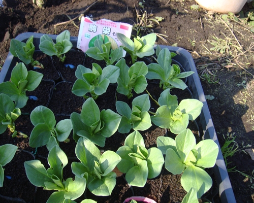 先日の日曜日に、11/3にポットの種蒔きしたソラマメの定植を行いました。順調に成長し、下葉の4枚がしっかりして来ましたの畑に定植したのです。今年もアブラムシ防止用にシルバーマルチを敷きました。シルバーマルチはその反射光が、アブラムシに対して忌避効果があるため、アブラムシが着きにくいので、毎年これを利用しています。そして約40センチメートル毎に穴あけ器で穴あけ。今年も2畝としました。約100本弱を植え付けました。ソラマメの種蒔き、定植時期は慎重を要するのです。あまり早く種蒔きし過ぎると、成長しすぎ、定植後に強い霜に合うとやられて黒変してしまうからです。この冬を無事乗り越え、大きく成長しまたビールのつまみとして堪能したいと願っている農園主です。