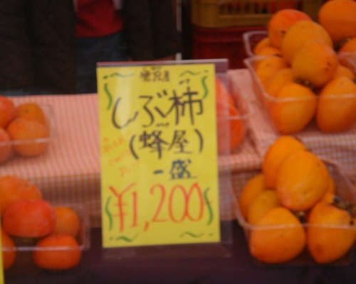 先日、馬籠に旅行した折、道路沿いの土産物売り場で大きな柿を発見。店のオバチャンに聞くと、干し柿用の渋柿であるとのこと。名前は『蜂屋柿』。養蜂を趣味としていることもあり、名前が気に入り、土産に購入したのです。美濃加茂市蜂屋町原産の渋柿とのこと。果実は長楕円形で頂部がとがっていた。段ボール1箱、9個入りを購入。車によるドライブ旅行であったため荷物にならないのが良いのです。この地の名産の柿のようです。側には普通の甘柿が並んでいたので、比較の意味で二つ並べてもらいシャッターを。大きさが2倍以上の大きな渋柿なのです。自宅に持ち帰り、早速、妻が皮を剥き紐で結わいて天日干し。妻も干し柿が好物ですのでクイックレスポンス。しかしハエやムシが寄ってくるので、妻のこれも早速カバーを設置。家に保管しておいた白いカーテン?花嫁の白いウエディングドレスの如き。これにより甘い生活が来て、半分生のようなジューシーな感触、そいて羊羹のように柔らかさを楽しむことができれば良いのですが・・・・。