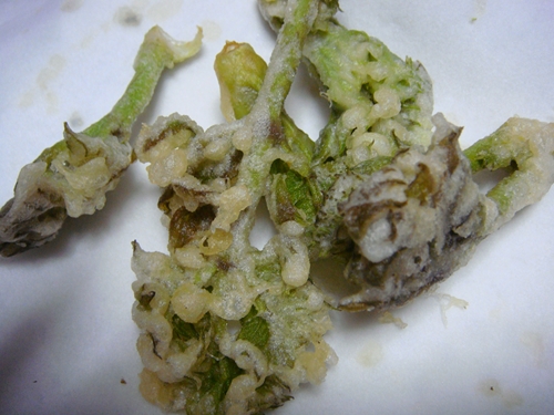 嫁いだ娘夫婦が二人でお土産を持って訪ねてくれました。 お土産は嫁ぎ先のお母様が御親戚の山形とご実家の沖縄を訪ねられた折りのお土産とのこと。まずはタラの芽。ご親戚のお父様が自ら山に出向き収穫してきた物とのこと。娘が辿々しい手付きで天ぷらにしてくれました。東北の地ではこの時期に本格的な春の到来なのでしょう。東北の春の香りを届けてくれたタラの芽の天ぷらは、山菜の王様の味覚そのもの。天然タラの芽のモチットした感触、ややほろ苦い野生の香りと、東北の春の旬の味を堪能させて戴きました。酒田夢の倶楽オリジナルの饅頭『こめまん』(小松屋)。餡の甘みは大人向き。皮はかなりもっちり。米が使われているからでしょうか。そして沖縄名産アーサ?、「アオサ」が転訛して、「アーサ」と呼ばれるようになったのでしょうか。それとも山形の天然岩のりかも。若夫婦から聞いたはずですがすでに健忘症が・・・・・・・。乾燥してありますがそのままでも香ばしい香りが食欲を誘います。熱いみそ汁にサッとはなしました。他にも酢の物、揚げ物としておいしそうな香りでした。。3月に訪れた沖縄のホテルの朝食にも、このアーサの味噌汁が出されていた事を想い出したのでした。 お手製の島らっきょうの塩漬け。若くみずみずしい島らっきょうのシャキシャキした食感と、さっぱりした味が実に旨いのでした。ビールの供に最高の味!。そして紅濱の豆腐よう。紅麹発酵で作った本格的豆腐ようです。「豆腐よう」は、琉球王朝ゆかりの旧家に伝わり、祝い事やもてなしに珍重された門外不出の秘伝の逸品なのです。私も沖縄旅行の帰りに購入してきた同じ紅濱のもの。ブログにも写真をアップしましたのでお母様が私のブログを想い出していただいたのでしょうか。この連休中は我が農園の新鮮な春野菜そして各地の春の香りを多いに楽しんでいるのです。