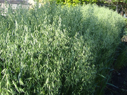 人工芝の敷設の後は麦の敷設です。我が養蜂場のある菜園で栽培していた燕麦(エンバク)を抜き取りました。通販で種麦を購入し昨秋撒いた物です。燕麦は烏の食べる麦の意でこの名が付いたという説と麦の形がツバメの尾羽に似ているのでこの名が付いたという説があるのです。この穀物は、蛋白質、脂肪、セルローズ、ミネラル分に富んでいて、栄養価が高く、お粥として食用にするほか、この実を発酵させてウイスキーを醸造したり,アメリカではこのエキスを性的機能の改善の精力サプリメントとしても使われているとのこと。我が農園での栽培の目的はこのエキスとは全く関係なく、敷き藁が目的。スイカ栽培での敷き藁の効果は下記4点ではないでしょうか。1)ツルから出る気中根を敷き藁に絡ませ、風などのあおりから守る。2)降雨時の泥跳ねによる汚れが葉に着いたり、スイカ果実が直接土に触れ腐るのを防ぐ。3)降雨時の土壌保水による乾燥防止。4)防草。近所の農家の方から昔聞いた話ですが、稲藁は、雨にさらされると腐り、稲作でいもち病や田んぼの土壌の菌が藁についているのでスイカに悪影響があると。また、腐ると藁が発酵して発熱することもありあまり好ましくないと。麦藁は風雨にさらされても腐らず敷き藁の役目をきちんと果たしてくれるとのこと。スイカの苗を定植しビニトンで保護した場所の両側に敷き藁をしました。スイカの苗も順調に生育し、既にこのビニトンの穴からツルの先端が顔を覗かせているのです。