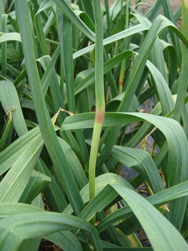 昨年9月下旬にホームセンターで販売しているニンニクの種球を購入し 我が農園に鱗片を植え付けましたが、このニンニクが順調に成長しています。今年はサビ病等が発生しなかったのです。さび病は主に葉を枯らしたり球根部分腐らせたりして成長に支障をきたすのです。そして最近の気温上昇により、ニンニクの芽がぐんぐん伸び出して来ました。中心からスーと伸びて来るのです。ジャガイモの芽を連想して、体に良くないのでは?と思ってしまいますが、伸びた芽は摘み取って食べることができるのです。芽の部分にはビタミン類が多く含まれているとのこと。放っておくと、芽が更にぐんぐん伸び、やがて花を咲かせます。目一杯に芽が成長すると頭を垂れてくるのです。この時が芽の収穫時期。開花は植物にとって膨大なエネルギーを要すること。そこで、芽に行く栄養をにんにく球に蓄えさせるために行う重要な作業が"芽摘み"なのです。みずみずしいにんにくの芽は、手作業で1本1本丁寧に摘み取っていくと、ポキッポキッと軽快な音を奏でるのです。20本ほど摘み取りました。この日は3cm程の長さに切り、さっと茹でた後、ベーコンと一緒にバター炒めを自ら作りました。味付けは塩と胡椒のみ。最近スーパーなどでは、中国産しか見かけず、新鮮なニンニクの芽を食べられるのは嬉しいことです。後2,3回はこの新鮮なニンニクの芽を楽しめるはずです。5月下旬頃にニンニクの下の葉が黄色くなり始めたら、ニンニクの収穫時期です。できるだけ天気がいい日に株ごと抜くのです。あとは葉先と根を切り取って、風通しのよい場所にぶら下げて保存しておくのです。