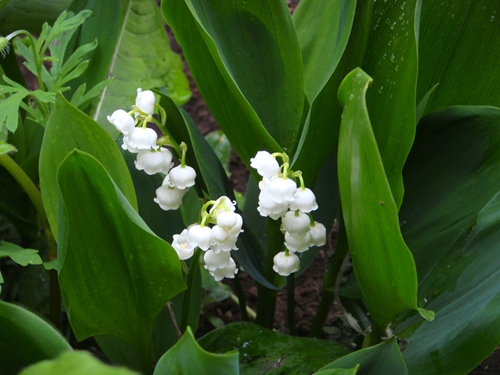 我が部屋の北側の植え込みに『スズラン』が可憐な白い花を咲かせています。まさに"鈴"そのもの。名前もそこから。ただし蘭科ではなく、ゆり科。とても美しいが有毒。牛や馬に食べられずに残るため、北海道等の牧草地に群生していたりするとのこと。日本原産の多年草で、誰でも名前は知っている有名な花。品種としては日本スズランとドイツスズランの2品種が。見た目はあまり変わらないが、日本スズランはすこし葉などが小型。園芸店やホームセンターで販売されているものはほとんどドイツスズラン。日本スズランは夏の暑さに若干弱く育てにくい為、強健なドイツスズランが多く出回っていると。我が家のものも、以前園芸店から購入した物でありドイツスズランであろう。花言葉は「幸福が帰る」「幸福の再来」「意識しない美しさ」「純粋」。