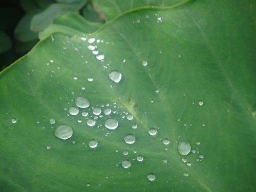 我が農園の里芋も成長し、その葉っぱの上に見事な水滴を載せていました。里芋の葉の表面は、ワックスのような物質で覆われているのです。 葉の表面がツルツルの為にこの様な見事な水滴が出来る訳ではなく、実は葉の表面には細かい凹凸があるのです。 この凹凸の間に空気が入り込んで水と葉の表面を触れにくくして、水をはじいているのです。里芋の葉の水をはじく仕組みをまねることで、水をはじく表面を人工的につくることが出来るのです。一番おなじみなのは調理器具で、こびりつかない鍋やシャモジ。この里芋の葉の表面の構造を真似てこれを利用して、ポリプロピレンの表面にエンボス加工を作り(細かい凹凸)、調理品がくっつかないようにしているのです。我々の周りの、そして我が農園の生物達は、よく調べると面白い工夫が多く隠されているのです。「なんでだろ?不思議だな」と思い、よくよく観察し、調べてみる事、好奇心をいつまでも持ち続けていたいアラカンオジサンなのです。。