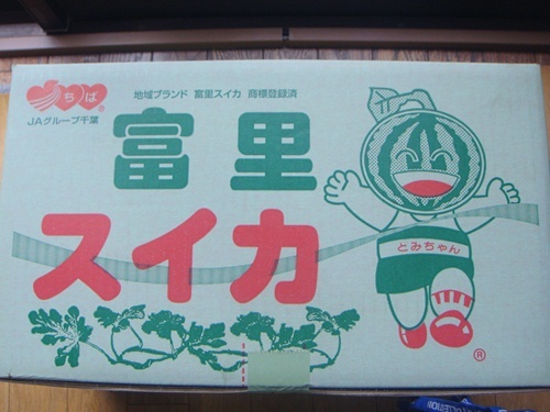 我が知人から先日、大きなスイカが2個送られてきました。千葉・富里スイカ。箱の中には大きなスイカが2個鎮座。もちろんこの時期に収穫できるのは ビニールハウス栽培なのでしょう。生産者名の入ったラベルが貼られていました。一つは実家へ。二人暮らしでは到底2つは恐怖そのもの。そしてもう一つも未だ箱の中。梅雨にスイカは・・・。梅雨明けを待っているのです。 そして送っていただいた方は、私が趣味の農園でスイカ栽培をしていることをご存じのはずなのですが・・・・・・(笑) そして我が家のスイカも日に日に大きくなり、収穫の日が近づいているのです。