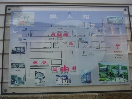 この日も6時にホテルを出て、三ノ宮駅まで10分歩く。コインロッカーに荷物を預け、TXで北野異人館へ。TXの運転手さんに異人館街の一番上までとお願いする。徒歩で坂道を昇るのは辛いものがあるので下り一方での早朝散歩を計画。英国館の先でTXを降りる。神戸北野異人館は三宮の北の山の手、神戸港を一望できる六甲山の麓にあり、異国情緒たっぷりの異人館・洋館の建ち並ぶ住宅街。1868年(慶応3年)の神戸開港で外国人のための居留地が設けられたが、来日する外国人の増加により、住宅地が不足しはじめ、神戸港を一望できる山の手、北野町が新たな住宅地として注目されるようになったと。英国館。 イギリス人が建て、イギリス人が住み続けた洋館。西部劇でもおなじみの典型的なコロニアル様式。ユニオンジャックの旗がたなびく。この日はロンドンオリンピックも間近・洋館長屋(仏蘭西館)。2軒が左右対称に建つ風変わりな建物。元は外人向けのアパートだったが、現在は展示品をフランスの美術や調度品で統一とのこと。ベンの家。 異人館の中でも建築の古さは屈指。堀、壁、窓枠に至るまで、明治35年建築当時のまま残されていると。かつて英国の狩猟家ベン・アリソンが住んでいて、彼が世界各地で射止めた動物の剥が展示されているとのこと。プラトン装飾美術館。大正の初期に建てられ歴史的伝統建造物で装飾美術館。旧中国領事館。中国の政治家・王兆銘 (1883~1944年) が1940年、南京に親日政府を樹立したとき、中国領事館として神戸に建てたものと。山手八番館。塔状の家屋が3つ連なる風変わりな建築(チューダー様式)。北野外国人倶楽部。開港当初、外国人居留地に建ち、外国人たちの社交場として賑わっていたとのこと。その名残は、暖炉や豪華な家具調度品にとどめていると。入り口の馬の像。うろこの家。国指定登録文化財。外国人向けの高級借家として建てられたと。 建物の外壁と多い天然石のスレートが魚のうろこに似ているところから"うろこの家"の愛称が生まれ、親しまれていると。ウィーン・オーストリアの家。 作曲家モーツアルトをテーマにオーストリアの文化などを紹介している。阿蘭陀坂を下る。香りの家・オランダ館、うろこの家、山手八番館へと続く坂道。坂道の途中から遠くポートタワーが見えたので望遠で。香りの家 オランダ館。WOLHIN’S RESIDENCE。旧オランダ領事館として使われていた大正中期の寄せ棟造り。デンマーク館。 北欧デンマークの歴史や文化を紹介している。神戸・北野天満神宮。 風見鶏の館。かつて神戸に住んでいたドイツ人貿易商ゴッドフリート・トーマスが自邸として建てた建物。 北野・山本地区に現存する異人館のなかで、れんがの外壁の建物としては唯一のもの。色鮮やかなれんがの色調、石積みの玄関ポーチ、2階部分の木骨構造など、他の異人館と異なった重厚な雰囲気をもっていると。塔の上の風見鶏。風見鶏はその名の通り風向きを知る役目をもっているが、雄鳥は警戒心が強いことから魔除けの意味や、またキリスト教の教勢を発展させる効果があるといわれているとのこと。館の前のベンチにサックスを持つ男の銅像が座っていた。私に似てメタボなオジサン。トランペットを吹く男の銅像。萌黄の館。昭和55年(1980年)に国の重要文化財に指定され、長らく"白い異人館"と呼ばれていたが、62年(1987年)からの修理で建築当時の淡いグリーンの外壁に復元されて、この名が名付けられたと。2階のベランダからは、神戸港まで見渡せる素晴らしい眺望が広がるとのこと。 木々からは、クマゼミのけたたましい鳴き声が。なかなか姿を見つけられなかったが漸く。パラスティン邸。白と緑のツートンカラーが優しい印象のこの館は、明治末にロシアの貿易商によって建てられたもの。旧パナマ領事館。白亜の壁に緑の柱や桟が映える建物。神戸北野美術館。「ホワイトハウス(旧アメリカ領事館)」を修復し、設立されたと。約1.5時間の早足いや早下りの北野異人館の早朝散歩。コンビニで水分補給して再びTXを利用して次はポートタワーに向かったのであった。