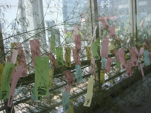 今日は7月7日 七夕の日。七夕は「たなばた」または「しちせき」とも読み、古くから行われている日本のお祭り行事で、一年間の重要な節句をあらわす五節句のひとつにも数えられているのです。願いごとを書いた色とりどりの短冊や飾りを笹の葉につるし、星に祈る習慣が今も残っているのです。私が通勤に利用するJR大崎駅でも毎年恒例の七夕祭りが開催されました。中央通路には沢山の短冊が飾られていました。そして願いを書いた短冊を飾るサラリーマンの姿も。えっ!!私の後ろ姿に似いる??!!。そして改札内のコンコースにも七夕飾りが。今年もなかなか。そして出張先の松山駅にも。幼稚園児の作品?そして松山空港内。そして東海道線、平塚の七夕祭りのポスターも私が利用する駅構内にも。この平塚の「七夕祭り」は、神事との関わりも薄れ、もっぱら、観光客や地元商店街等への集客を目当てとしたものとなっているのです。今日も東海道線内には平塚に向かう多くの浴衣姿の女性や子供達の姿があったのでした。