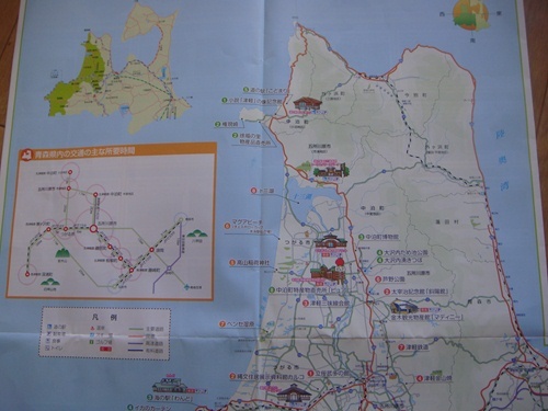 仕事で青森・五所川原へ再び行ってきました。そして翌日は同僚と津軽半島を更に北上し、我が社の納入設備がある旧三厩村へ。三厩村(みんまやむら)は、青森県東津軽郡の北西、津軽半島の最北端に位置していた村。2005年、同郡の蟹田町、平舘村と合併し、今は外ヶ浜町となったため消滅した村。小説「津軽」の像記念館に立ち寄る。太宰治が2~6才までの間、子守役をつとめた越野タケが眠る青森県北津軽郡小泊村にある記念館。太宰とタケのブロンズ像が展示されていた。海岸沿いを北上する。風が強いため日本海には白波が。小泊~竜飛岬をつなぐ国道339号、通称「竜泊ライン」にある、高さ21mの滝七段の岩肌を伝い流れることから"七ツ滝"という名がつけられたのだ。荒波の中、島にゴムボートで渡り釣りをしている二人。途中の峠は濃霧。 小泊にあるウインドパーク風力発電群。国道339号線の東津軽郡外ヶ浜町龍飛の龍飛岬附近に「階段国道」と呼ばれる区間があり、階段部分は車両通行不可。岬下から灯台までが362段の階段、日本で唯一、総延長388.2メートルの階段国道。竜飛岬灯台。津軽半島の竜飛崎の突端に立つ白亜円形の大型灯台。周辺は津軽国定公園に指定され、津軽海峡から北海道も望める風光明媚の地。灯台横から望む津軽海峡。海上自衛隊のレーダー施設。津軽海峡というと、大間のマグロ漁が思い出されるが、実際にはロシアの潜水艦なども行き来する海峡。売店にはたくさんのタコの足が干されていた。 灯台の下には、石川さゆりの 津軽海峡冬景色 の歌碑が建っていた。真ん中手前に赤いボタンが見えるが、このボタンを押すと、何と、津軽海峡冬景色の歌が流れ始めたのだ。しかも津軽海峡冬景色の中で竜飛崎が出てくるのは2番の歌詞なので、流れる歌も、イントロの後すぐに2番から始まるのだ。歌碑も2番の歌詞の部分が大きくなっていたのであった。灯台下の名物売り子・竜飛の母さんとシジミの味噌汁を購入した同僚とのツーショット。更に三厩に向けて車を走らせる。途中『義経寺』に立ち寄る。入口には義経伝説が残る『三厩岩』。本堂。古くは鎌倉時代、源義経は兄の頼朝と不和になり、平泉の藤原秀衡のもとに逃れるも、息子の奉衡は頼朝に恐れをなし、義経を急襲し、義経は自刃する。これが史実であるが、義経は悲劇のヒーローとして讃えられ、各地で実は生存していたという伝説が数多くあるのだ。その中でもこの三厩が代表の地として挙げられるのだ。義経は平泉を逃れ、南部、八戸、三沢、六ヶ所、平舘、油川、今別を通り、そして三厩へ辿り着く。そして蝦夷へ向かおうとしたが海が荒れて渡れなかった。義経は念持仏の白銀の千手観音を奉安し、三日三晩祈願した。すると老人が現われ、三頭の竜馬を与えられた。その竜馬に乗り、義経は蝦夷へ向かったのであると。龍馬山義経寺仁王門 にある仁王像。いずれも見事な迫力の一木造り? そして我が社の納入プラント・三厩浄化センターに漸く到着。主要機器の曝気機も順調に稼働しているようであった。 そして青森市内へ。途中、北海道新幹線の橋脚工事が行われていた。そして青森市の名景の一つとなっている青森ベイブリッジを渡る。橋長は1219mあり青森市最長の橋。青森市内はねぶたの準備の真っ盛り。今年は8/2~8/7まで開催するようであった。ねぶたのハネトが頭に載せる花笠も展示されていた。そして見物席も既に完成。そして車の前には八甲田山が。
