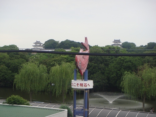 先日大阪から新居浜に移動する折、高砂に住む親友に会うため明石駅で途中下車。ホームから明石公園が見えた。待ち合わせ時間に余裕があったので明石城へ。お堀の噴水と二羽の鶴?。明石公園入り口右手にある銅像は、中部幾次郎翁。この地に生まれた明治から昭和初期の実業家。林兼商店(後の大洋漁業、現在のマルハニチロホールディングスの前身の一つ)創業者とのこと。明石城入り口の石垣。明石公園案内図。明石城 武蔵の庭園入り口。宮本武蔵が明石城内に樹木屋敷を造ったという記録があり、武蔵の庭園を整備したとのこと。本丸の南東端に築かれた三層の櫓、巽櫓。桁行き5間(9.09m)、梁間4間(7.27m)、高さ7間1寸(12.19m)の隅櫓で、妻部を東西に置く入り母屋づくり。坤櫓(ひつじさるやぐら)。天守閣が造られなかった明石城では最大の規模をもつ櫓。天守台のすぐ南にあり、天守閣に変わる役割を果たしたとみられると。雨が降り出したので、受付で日本100名城のスタンプを押し、慌てて戻る。このスタンプも目的の一つ。とき打ち太鼓。カラクリ人形が作動し時を知らせてくれていた。