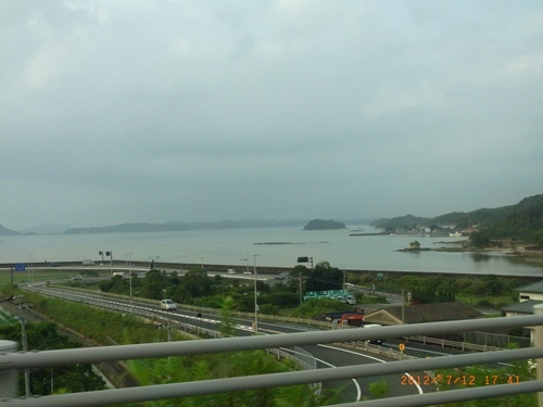 天草に出張し天草空港から最終便で福岡空港へ戻ろうとしたが、天草エアラインから我が携帯に、機体整備が間に合わないため欠航との連絡が。やむなくレンタカーで天草五橋を渡り熊本駅まで行くことを決断。カーナビに熊本駅をSETすると約3時間かかるとの表示。松島有料道路に入る。天草五橋は天草上島から前島、池島、永浦島、大矢野そして熊本県宇土半島三角までを5つの橋で結んでいるのだ。日本道路公団が昭和37年7月に起工し、4年2ヶ月後の41年9月に開通。海には無数の養殖真珠が眠っているため、大矢野島-松島間の17.4kmは「天草パールライン」と命名され、ドライブなどの観光スポットとなっているのである。まずは松島橋 5号橋。この橋は天草五橋の中で唯一赤いパイプでできている橋。次に前島橋 4号橋。コンクリート製、歩道は赤い色で舗装。この橋は橋脚から左右にバランスをとりながら張り出して行くヤジロベー工法で建設されたとのこと。そして中の橋 3号橋。3号橋からは『わくわく海中水族館』が見えた。東西に50m、南北に34m、総トン数3,200トンの巨大なドーナツ型の船が「わくわく海中水族館シードーナツ」とのこと。大矢野橋 2号橋。大矢野島を渡り終えた所に架かる黄色いアーチ橋。そして最後の天門橋 1号橋。天草からの出口、宇土半島と大矢野島をつなぐ、天草五橋最大の橋。橋長502m、連続トラス型式の橋。天門橋が架かっている場所の隣に新天門橋を架橋する予定とのこと。そして更に1時間強を走り、19時半前に熊本駅に到着したのであった。この天草五橋は高校の修学旅行で訪ねた記憶はあるが、天草のどの島までバスで訪ねたかは全く記憶にないのである。そして今日は『海の日』そして私の62回目の誕生日。私のための『国民の祝日』。特にコメントはないが、今後、2018年、2029年、2035年、2040年、2046年の7月16日が国民の祝日になるとのこと。目標は2035年の7月16日と勝手に。