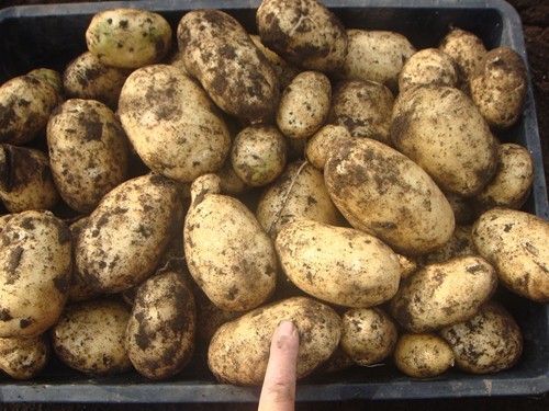 先日は我が農園で栽培しているジャガイモ『インカのめざめ』の収穫を行いましたが、先週末に残りのジャガイモの収穫を行いました。まずは『シンシア』。フランス原産の品種。、見た目はたまご型のきれいな形。肉質は淡黄色。豊かな香りと味わいがあるのです。芽が浅く色白。名前が良いのです。今年は成長も良く大きなものが収穫できました。『男爵』。明治時代の男爵がイギリスから持ち込んで日本に定着させた品種。我が家はメイクイーンではなく男爵が好み。コロッケなど潰してから使う料理に適しているのです。そして皮も中身も鮮やかな紫色のジャガイモ『シャドークイーン』。今までの紫じゃがいもよりも3倍のアントシアニンを含むことと、調理後も鮮やかな色が落ちないところが特徴。まるでサツマイモのような赤い皮が特徴のジャガイモ『レッドクィーン』。切断面です。左が『レッドクィーン』、右が『シャドークイーン』電子レンジでチンしてみました。『レッドクィーン』は本当にサツマイモの如し。『シャドークイーン』は青紫に変身。そしてユニークな形のジャガイモも発見。我が心と同じ?真っ赤なハート型。そして・・・・・・・・・・・・・・。食べきれないので同僚にも送付。このブログを見た方で欲しい方はご来園を!!