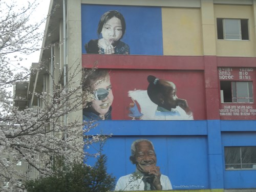 春分の日に縁者の墓参りに妻と行ってきました。自宅から車で20分ほどの大規模霊園。霊園手前の高校の校舎の壁には卒業生が描いた絵画が。霊園内は多くの墓参りの車で大混雑。みどり豊かで閑静な霊園。市街地にも近いため、交通の便のよい公園墓地として多くの市民に利用されているのだ。霊前に我が家の庭から用意した花を手向ける妻。洋式の墓地も巨大。 縁者の墓の近くで見事に開花した桜。亡き人もこの桜を楽しんでいるのであろう。白木蓮も見事。そろそろ我々も墓地を準備しなければと。