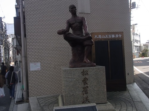 先週土曜日は休日出勤。仕事が早めに終わったので単身赴任の同僚と目黒不動尊まで仲良く散歩。山手通りを渋谷方面に歩くこと15分。山手通りの羅漢寺信号に松雲羅漢像があった。天恩山五百羅漢寺の開基の像。入り口には「苦しさに負けず、いつも心あかるく最善を尽くす」という言葉が出迎えてくれました。いきなり反省させられるお言葉・・・ありがたや。この日は時間がないため立ち寄らず。そして目黒不動尊に到着。大同3年(808年)に慈覚大師が開創、徳川家光が堂塔伽藍を造営したとのこと。正式名称は瀧泉寺(りゅうせんじ)。仁王門の下には阿吽の金剛像が。 境内案内図。境内にはプラタナス(鈴懸けの木)の白き大木が。1200年前からあると言う「独鈷の滝」は、古の行者の修行の場であったとのこと。独鈷(どっこ、そういう仏具があるとのこと)を投げたら水が湧いたみたいな伝説があると。 そこにある「水かけ不動尊」。とりあえず、柄杓で水かけて祈るとのことで私も。 急な階段を上がると「大本堂」が。昭和56年の再建とのこと。当然、不動明王は、この堂の中に安置されているが、ご開帳は12年に1度とのこと。石灯籠の周囲には多くの絵馬が。江戸時代の建造物はすべて第2次世界大戦の空襲で焼けてしまったとのこと。 本堂の真後ろには大日如来坐像が。 大日如来の四隅には四天王が。 廣目天:西方の守護神、本尊に向かって左後方に。多聞天:北方の守護神、本尊にむかって右後方に。 ・・・・・・ 続く ・・・・・・