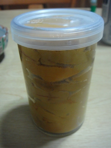 会社の上司から生ウニの瓶詰めをいただきました。青森にある協力業者の専務が来社され、そのお土産に頂いたとのこと。瓶にギュウギュウ詰めで茶色く美味しそうなウニ(海胆)が詰まっていました。青森・下北・大間の加工者の住所と名前入り。早速頂きました。大間で主に水揚げされるウニはムラサキウニ。岩と同系色の茶色っぽいエゾバフンとは違い、ムラサキウニは、黒褐色の殻のまわりに長いトゲを持ち、鮮やかな黄色。一口食べると、甘みと潮の香りが一気に広がるのでした。大間のウニは、津軽海峡の最上質の真昆布"渡島昆布"を主食としていると。渡島昆布は、肉厚があり幅も広く大変風味が良いため、昆布の最高級品として関西方面で特に好まれており、懐石料理などに多く使われているのです。そのような贅沢な昆布をたっぷり食べ、丸々と太るため、上品な甘みが強く、身がプリプリ。粒が大きくしっかりとしている大間のウニを堪能。併せて我が農園のワケギとキュウリの味噌和えも楽しんだのでした。贅沢にも炊きたてのご飯にウニを載せ、そのまま一口で楽しんみ続けたのでした。