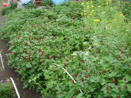 我が養蜂場のある農園のクリムソンクローバが開花を始めました。昨秋、通販で種を購入し種まきしたもの。その花の姿からストロベリーキャンドルの名前があります。さらに別名もたくさんあるようだ。「ストロベリートーチ」、「ベニバナツメグサ・紅花詰草」、「レッドクローバー」、「スカーレットクローバー」などは、本名の「クリムソンクローバー」も含め、すべてが赤い花色や花の形状に由来した名前なのである。 赤い花穂を炎に見立てた「赤炎」との和名もあるようだが、やはり「ストロベリーキャンドル」がいちばん似合う名前であるのだ。 我が家のミツバチ達がこの長めのイチゴの蜜が大好きなのです。 既に我がミツバチが訪花していました。