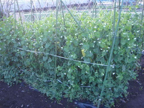 我が農園のスナップエンドウも漸く収穫の時期を迎えました。多くの白い花が日に日に多くなってきました。下部の方には収穫出来るのスナップエンドウが。さやが柔らかく、さやと豆の両方を食べることが出来るのです。さやは肉厚で甘みが強く美味。 さっと塩茹ですると鮮やかな緑と甘みが楽しめる。また、天ぷらにするとサクサクとした食感を楽しめるのです。このゴールデンウィークは不在ですので、この日は同僚にプレゼント。