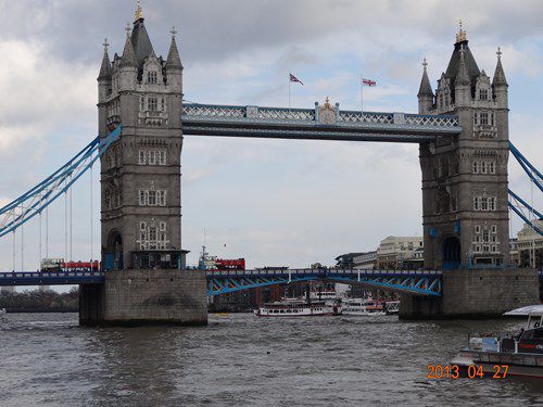 ロンドン塔見学後はテムズ川沿いをタワーブリッジに向かい歩く。ロンドン塔のすぐ横にかかる跳開式の可動橋。いうまでもなく、ロンドン観光の必見スポットのひとつ。 タワーの高さは40mあり、左右にあるゴシック様式のタワー内部は展望通路・歴史博物館があるとのこと。 中世の城のような塔を持つタワーブリッジ。この橋とテムズ川の景観はロンドンの象徴的なひとこま。タワーブリッジの銘板。 イギリス(United Kingdom 連合王国)の首都・ロンドン市 CITY OF LONDON(人口720万人)の紋章も中央に。向かい合った二匹の龍はチューダー王朝の象徴で、楯の左上に描かれた剣はロンドン市の守護神セント・ポールを意味するとのこと。帯には「DOMINE DIRIGE NOS 主よ、我等を導き給え」というラテン語が書かれているのだ。タワーブリッジを徒歩で渡る。アーチの建造物は、展望台になっているのだ。橋の 2 つの塔の間に渡されたウォークウェイズはどちらも、ロンドンとテムズ川を見晴らす眺めを満喫できる絶好のスポット 。残念ながら上らず。途中ちょっと変わったバス(?)を見かけた。調べてみるとPedibusというのだそうだ。グループでパーティをしながら、車輪をこぎつつロンドンの街を走ることのできるバスとのこと。 再び対岸からのタワーブリッジ。 対岸からのロンドン塔。 対岸を歩いていくとサザーク大聖堂(Southwark Cathedral)の塔が見えた。ひっそりと佇む小さな大聖堂。ロンドン最古のゴシック建築。 歩き疲れていると、大聖堂の前は公園になっていて、その脇の高架下となっているところに多くの市がたっていたのだ。そして漸く息子が予約済みのレストランに到着。ボローマーケットの中にあるRoast。入り口は狭いが2階にあがると綺麗な空間が広がる高級レストラン。 店の中は大混雑、そして高級レストランだけあり多くの紳士・淑女が。この日もコース料理をオーダー。Steamed asparagus with hollandaise sauce。Poached fillet of Loch Duart salmon with marinated fennel and foragedherbs Goats curd cheesecake with poached Sussex strawberries and basil 夕食を食べながら、息子との衝撃的なそしてうれしい会話が弾んだのであった。