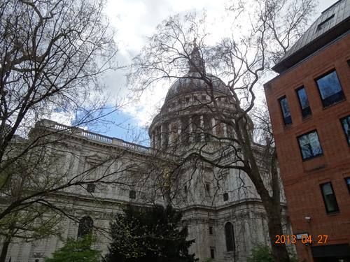 古代エジプトギャラリー 「狩猟の図」ネブアメンの墓の壁画で、墓主はナイル川の沼に浮かべたパピルスのボートに乗っている。彼は片手に高く投げ棒を持ち、もう一方の手で青鷺をつかんでいる。第18王朝、アメンヘテプ3世の時代、テーベの役人ネブアテンの墓の壁画。そして東洋館、日本からのコレクションコーナーに向かう。まずは、百済観音立像のお出迎え。えつ!!何故ここにあるのと瞬間思ったがレプリカの文字を見つけて一安心。 歌川 国芳 相馬の古内裏活劇を見るような動きのあるシーンの描写と大胆な構図に、歌川国芳らしさのよく表れた人気の作品。綱島亀吉「風俗三十二相」の文字が。明治時代の風俗画家?歌舞伎・女形の坂東玉三郎も。 明治天皇の外国大使観閲を描いた絵画。穏やかな顔の仏像。 そして内部の見学を終え、大英博物館のグレートコートで休憩。ここには、ライオンがお住まい。実はクニドスのライオン。重さ7トン以上もある巨大なライオンはトルコの南西の臨海都市・クニドスの古代墓地の墓から出土したもの。大英博物館を後にし、徒歩にてセント・ポール大聖堂に向かう。1666年のロンドン大火の後、建築家クリストファー・レンにより再建され、1710年に完成。再建されたセント・ポール大聖堂はバロック建築に分類され、大ドーム及び西側正面にある2つの塔の特徴を持ち、高さ約111m、幅約74m、奥行き約157m。セント・ポール大聖堂のドームは3層構造で、眼窓つきの内側のドームと鉛板で覆った木製の外側のドームの間に煉瓦を積んだ構造とのこと。遠いところから撮らないと全体的な形が分からないほど大きいそして荘厳な雰囲気。英国初の女性首相で「鉄の女」と呼ばれたマーガレット・サッチャー氏の葬儀が半月前の4月17日、このセント・ポール大聖堂で営まれたのだ。葬儀はエリザベス女王も参列し、国葬に準じた扱いで執り行われたとのこと。セント・ポール大聖堂の後は再び地下鉄に乗りタワー・ヒル駅まで行く。タワー・ヒル駅を出ると南西側に超高層ビルザ・シャード(The Shard)が。地上87階建て、尖塔高310mで、ヨーロッパで最も高いビルディング。ザ・シャードは、ピラミッドを垂直に引き伸ばしたような形状をしており、互いに接触しない8つの面からなっていた。 30セント・メリー・アクス(30 St Mary Axe)は、ロンドンの金融中心地である、シティ・オブ・ロンドンのセント・メリー・アクス通り30番地に聳え立つ超高層ビル。ピクルスに使用する小さいサイズのキュウリを意味する「ガーキン(The Gherkin)」として広く知られいるとのこと。徒歩でロンドン塔の外壁をぐるっと回ってテムズ川方面の入口へ向かう。この場所は35年目に来たことをよく覚えていたのである。ロンドン塔(Tower of London)は、テムズ川の岸辺、イースト・エンドに築かれた中世の城塞。正式には「女王陛下の宮殿にして要塞」(Her Majesty's Royal Palace and Fortress)と呼ばれるように、現在も儀礼的な武器などの保管庫、礼拝所などとして使用されていると。『ヨーマン・ウォーダーズ (The Yeomen Warders)』はロンドン塔の衛兵隊であり、そこに属する衛兵のことも指すのだ。ビーフィーター (Beefeater)の通称でも知られていると。 ロンドン塔の日本語地図を入手。 ロンドン塔一般入り口。内部城壁の 角に立つ塔。ロンドン塔西側の正門から入場して、東へ進んでいくと右手に逆賊門(トレイターズ・ゲート)。ウェークフィールド・タワーとブラディ・タワーの間の通路を北へ抜けると、主閣のホワイト・タワーのほうに抜けられる血門(Bloody Tower)が。 ロンドン塔の衛兵交代式が行われていた。 衛兵に笑顔も。 ホワイトタワーに入場。日本の城と同じく、中は展示スペースになっていて、目を引く多くの展示物が。注目は何といっても、ヘンリー8世のこの甲冑。ジュエルハウスの中には、王室の王冠や王笏、金銀宝石類などがどっさりと展示されているのだ。 「EIIR」はエリザベII世の事。ジュエルハウスは王室の宝飾品が数々展示されており、超圧巻。さすがに警備がすごく、金庫のような何十cmもある厚い扉を通るのだ。あまりに大きい宝石がいくつもあって圧倒されたのであった。処刑台跡。ビーフィーターの愛称で知られる衛兵が観光客と気さくに記念撮影する姿も。