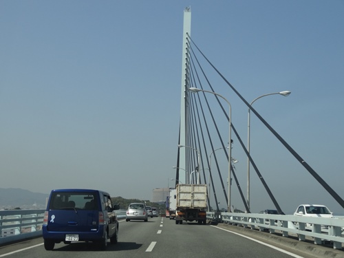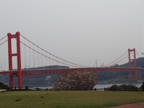 先日、伊万里に出張した翌日は土曜日、大切なお客様そして今は定年を迎え退職され親しい友人となっているMさんが、海釣りによく行かれていると言う生月島に車で連れて行ってくれました。生月島(いきつきしま)は、長崎県の平戸島の北西にある島。そして全島が長崎県平戸市に属する島なのです。伊万里から海岸沿いに走り約1時間で平戸大橋に到着。平戸を訪れるのは三度目であろうか。平戸大橋は平戸市の中心市街地がある平戸島と本土部を隔てる平戸瀬戸に架かる吊り橋。国道383号の一部であるほか、かつては橋を含む区間は有料道路だったがこの日は無料で通過できたのであった。平戸大橋の麓の駐車場でトイレ休憩。この日は桜が満開状態。長さ665m、中央径間465.4m、桁下高さ30mの真っ赤な吊り橋。とりあえず平戸の島を縦貫し生月島に向かう。赤信号で停止した交差点の横には色々な交通安全の人形が迎えてくれた。正面前方に平戸島と生月島を結ぶ生月大橋が見えて来た。この橋も全区間を生月大橋有料道路であったが、3年前に無料開放されたとMさんから。こちらは水色のトラス橋。橋長 は960mとのこと。生月大魚籃観音に向かう。観音様の駐車場近くからの生月大橋。観音様へ向かう通路に沿った美しい白塀と満開の桜。舘浦漁港を見下ろす高台にたつ観音像は、ブロンズ像としては日本屈指の大きさを誇ると。 像高:18m、基壇:3m、重量:150tとのこと。世界の平和と海難者および魚介類の霊を追悼し、漁船の航海の安全を祈念して昭和55年に建立されたと。間近に見ると正しく巨大。台座内部にも無料で入館することができた。10分の1の大きさの生月大魚籃観音をはじめ木彫りの観音像など70体が祭られていた。私のお腹に似た木彫りの布袋様もにこやかに迎えてくれた。 こちらは美しい観音像。塩俵の断崖が見える場所で車を止めてくれた。塩俵の断崖は、県内の柱状節理の中でも代表的なもので、南北約500mにわたって最大高さ20mほどの玄武岩の柱が並ぶ奇観が目の前に。 海際には、波によって切断された柱が、六角形の面を段違いに並べたようになっていたのだ。この形状が、昔、塩を運んだ俵に似ており、これが名前の由来になっていると。奇観を堪能している私の横で、Mさんはもっぱら次回の釣り場を何処にしようか思案を巡らしているのであった。