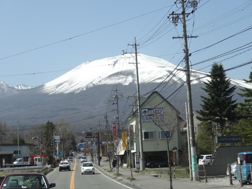 長野に行った折のレンタカーからの浅間山の姿。浅間山は、長野県北佐久郡軽井沢町及び御代田町と群馬県吾妻郡嬬恋村との境にある標高2,568mの複合火山。円錐型をしている山。世界でも有数の活火山として知られているのだ。まだまだ頂上付近には雪が多く残っていた。途中小さな噴煙が上がるのが確認できたのであった。