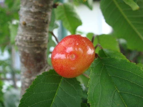 我が家の横の農園に植えてあるサクランボ・佐藤錦が赤い実をつけました。毎年、少しずつ花の数を増やしてきましたが、今年は例年になく多くの花を付けました。我が家のミツバチが訪花したのでしょうか。いくつかの実が大きく成長し赤くなってきていました。 野鳥に食べられないよう、空気抜きを付けたビニール袋で覆ってやりました。途中雨の後に、実が割れてしまったものもありましたが、ご覧のような見事な赤となりました。まさにキラキラ輝く赤い宝石。見て感動!食べて感動!したのです。