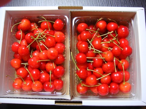 同僚が蜂蜜のお礼にと、さくらんぼを送ってくださいました。甘いもののお返しとのこと、お気遣い恐縮です。真っ赤に輝く粒ぞろいの宝石が二箱。国内で最も多く生産されている品種。大正元年頃、従来の品種のナポレオンと黄玉を交配してできた「佐藤錦」。名前は交配育成した山形県東根市の佐藤栄助に因んで1928年(昭和3年)に命名されたとのこと。苗の販売業者が渋る佐藤栄助を押し切り「砂糖のように甘い」という意味も込めて名づけたとのこと。さくらんぼは、桜の実という意味の「桜の坊」の「の」が撥音便となり、語末が短母音化したと。子供の頃、みつまめの缶詰の中に入っている一つだけのさくらんぼが欲しくて・・・・・。生産者のご家族の写真が表紙を飾っているパンフレットも同封されていました。「朝一番で収穫、完熟のさくらんぼをその日に発送」とのこだわり。さくらんぼ狩りは、例年6月中旬に観光果樹園がオープンし、6月中旬には「佐藤錦」、7月初旬には「ナポレオン」の最盛期を迎えると。食べてうれしい、もらってうれしい赤い宝石「さくらんぼ」。梅雨開けて 陽射しに光る さくらんぼ 赤い宝石 輝いて夏・・・・・・・・・・詠み人知らず