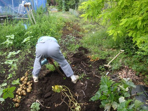 先週は我が旅友がジャガイモ掘りの応援に来園くださいました。現在でも野球を趣味とするスポーツマン。逞しい助っ人なのです。 こちらは男爵系『シンシア』。目が浅く、たまご型でつるりとキレイな形。煮くずれしにくく、どんな料理にもよくあうと言われており毎年栽培する品種。ご自宅でも菜園をやられているだけあり足腰もしっかり。 フランス生まれの品種を北海道で育んだじゃがいも『シンシア』。 そして今日はこのジャガイモを自宅まで運びました。こちらは『シャドークイーン』 。一輪車にいれ自宅までヨイショ、ヨイショと。 こちらは小粒の『インカのめざめ』 。原産地・南米アンデスのジャガイモを日本向けに改良したもの。鮮やかな黄色と、コロコロと小粒な姿、栗かサツマイモを思わせるホクホク感で、人気のある高級ジャガイモ。 シャドークィーンは、外見さは黒っぽい濃い紫色をしていて、中は鮮やかな濃い紫色。 『インカのめざめ』を早速楽しみました。軽く塩を振ってそしてバターを塗って。黄色い実が、一味違う鮮やかさを演出してくれたのです。