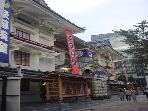 仕事で新歌舞伎座の近くにある事務所に行ってきました。新歌舞伎座です。 今年、平成25年4月2日、建て替えられた新歌舞伎座。歌舞伎座と歌舞伎座タワー(オフィス棟)による複合施設「GINZA KABUKIZA」として、新しい歴史を刻み始めたのだ。歌舞伎座/正面。 櫓の3方は紫色の幕で囲われていた。その幕の正面に歌舞伎座の座紋の「鳳凰丸(ほうおうまる)」が。8月2日から開演される八月納涼歌舞伎の演目が紹介されていた。 第1部~3部までの題目と出演者の紹介。1889年(明治22年)に開場以来、第5期目の歌舞伎座。第四期歌舞伎座の瓦屋根、唐破風、欄干等の特徴的な意匠を踏襲、従来通りの存在感ある和風意匠の趣とすることにより、歴史と景観の継承を図ったとのこと。 未だ歌舞伎座で「歌舞伎」と言うものを観賞したことのない私。近いうちに是非、日本が誇る伝統芸能「歌舞伎」を鑑賞したいと思っているのである。 JR有楽町までの帰路。映画『ローン・レンジャー』は8月2日より全国公開されるとのことで、この映画の宣伝カーが。小学校低学年?の時にテレビ放映され、黒い仮面をつけた主人公が白馬にまたがった姿が、アメリカ版『鞍馬天狗』の如きであったことを懐かしく想いだしたのであった。そして主人公ローン・レンジャーが愛馬シルバーを発進させる時の掛け声「ハイヨー、シルバー!」のかけ声も懐かしかったのであった。それにしても懐かしき西部劇の世界。銀座和光・服部時計台。銀座4丁目交差点の一角に立つ和光の建物は、昭和初頭から今日に至るまで、銀座のシンボルとして、銀座通りのイメージを象徴してきたのだ。銀座のビルの合間の夕方の空。 銀座の象徴 柳並木の碑。「銀座の象徴 柳並木銀座の柳は明治十年頃に植えられ銀座の象徴とされたが三度の変遷を経て昭和四十三年銀座通りの改修と共に姿を消したこのたび西銀座通りが東京都のシンボルロードとして歩道拡張と共に御影石鋪装を施し面目一新されたことを機に並木を柳に代え銀座の象徴復活を果たした西銀座通会はこの柳が末長く人々に愛され親しまれ続けることを願いここ数寄屋橋公園に碑を建立する平成十一年十一月西銀座通会会長 柳澤 政一」 と。数寄屋橋交差点に近い歩道にある、石原裕次郎が唄った「銀座の恋の物語」の歌碑。歌碑全体がベンチになっていて、恋人同士が並んで座ると、真ん中に碑が収まるようになっているのだ。歌碑の近くには、何代目かの「銀座の柳」も。