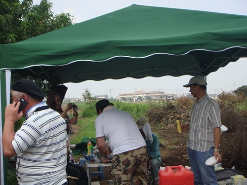 夏休みも後半戦に入っていますが、夏休みの初日に同僚達と我が農宴で『農宴BBQ』を決行しました。Nさんが熱中症対策にと、ターフテントを事前手配してくえました。参加者は奥様、お子様を含み総勢9名。前日夜我が家に宅急便で到着しましたが、不在のため受け取れず、この日の朝宅急便配送センターまで車で受け取りに行ってきたのです。 早速BBQ開始。我が菜園のタマネギ、ピーマン、そしてカボチャ等を準備しました。 そして仙台からTさんの奥さんも急遽参加され、何と厚切りの牛タンを持ってきて下さったのです。茅ヶ崎から参加の先輩、旅友のSさんも完璧な熱中症対策の下、牛タンを頬張っていたのでした。Mさんの奥様もお子様と一緒に楽しんで頂きました。 最近我が農宴の前の植木が伐採されてしまったため、木陰が少なくなりこのターフ無しでは危険なBBQだったのです。仙台から大量の『塩うに』も到着。超豪華な『農宴BBQ』 となったのです。可愛いおにぎりも準備していただき、塩うにを乗せて楽しんだのです。タンすじ煮込み、キュウリの佃煮も人気。私は途中アルコールも廻り、ゴザの上でトドの昼寝。 途中妻も参加し、16時過ぎまで全員元気に賑やかにBBQを楽しんだのです。Tさんの奥さんの手作りの料理の登場により、Sさんがkれも事前手配してくれた松尾のジンギスカンは手つかずの状態、現在我家の冷凍室で次の出番を待っているのです。 次回は秋の『芋煮会』を計画しています。