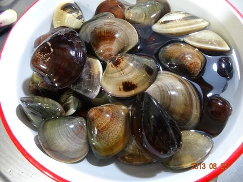 佐賀県・伊万里にお住まいの友人Nさんが、今度は巨大ハマグリを送ってくださいました。5cm以上あるメタボなハマグリがボールから溢れていました。ハマグリにはいろいろな色、模様があることを再認識。 中央が丸く膨らんだ巨大ハマグリ。 併せて海苔が一緒に。そしてご出身の五島手延うどんも。早速『焼きハマグリ』で。 身も巨大でプリプリ、汁の中に潮の香りが溢れていました。汁も美味そのもの。 そしてお吸い物でも。これで残暑を乗り切れそう。Nさんいつもいつもお心遣いありがとうございます。
