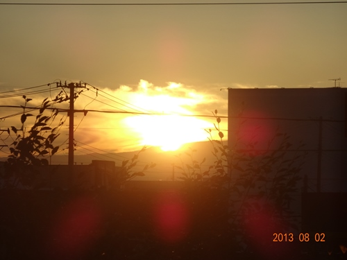 養蜂の師匠であり、近くにお住まいのYさんから、ひまわりの開花情報をいただき先ほど車で見に行ってきました。車で5分ほど盛り土した畑一面に見事にひまわり畑が拡がっていました。残念ながら後ろ姿のみ。車を降り、畦道を歩きご対面。背丈の低いひまわりが『向日葵』状態。 我が趣味の養蜂のミツバチ達も訪花し花粉を集めていること間違いなし。直線距離にして300m程度の距離にあるのです。ミツバチの行動範囲は半径約3km~4kmほどで、美味しい蜜を求めて飛び回っているのです。そして1匹のミツバチが一生のうちに採るハチミツは「スプーン1杯分」と言われているのです。そいて慌ただしく自宅に戻ったのです。