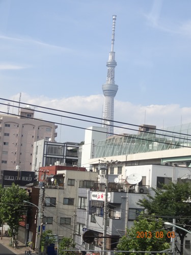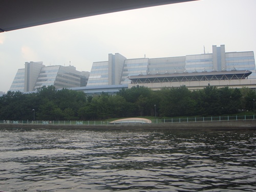 下水道展の帰路、同僚と二人で、船を利用し浅草まで隅田川の船旅を楽しみました。ゆりかもめ 国際展示場正門駅から徒歩3分ほどの乗り場から出発。乗客は我々と同じく下水道展からの帰りの人々。レインボーブリッジ 。 田町からお台場海浜公園を結ぶ、東京湾の新しい名所。東京タワーも見えてきた。 日の出桟橋に到着。御座船「安宅丸(あたけまる)」が停泊中。江戸時代、西国・九州の諸大名は参勤交代の際に、海路30〜40艘の船を従え、現在の大阪・淀川口あたりまで瀬戸内海を往来したと云われているのです。この時、殿様御召船として使用された船を「御座船」と言うとのこと。これを復元し東京湾クルーズィングに利用されているのです。日の出桟橋で別の船に乗りかけ浅草まで向かう。まずは勝鬨橋を通過。昔は真ん中の部分がはね上がり、船を通したのです。重厚な橋ですが、夜のライトアップされた姿は、テレビドラマなどの舞台にもなる美しさを持っている橋。佃大橋の橋脚。西岸には近年建て変わった聖路加病院(聖路加ガーデン)が見えたのです。 永代橋 。長さ185.2m、威風堂々、男性的な橋。豊海橋。 隅田川にそそぐ日本橋川の橋。カラフルな屋形船とすれ違う。清洲橋。長さ186.6m、ドイツのケルンの吊り橋をモデルにしたと。女性的な美しい橋として有名。 モダンな釣り橋の新大橋 。 両国橋 。 西岸には国技館があり、両国は相撲のメッカ。厩橋。隅田川に架かる橋で唯一の3連アーチ橋。 吾妻橋 。 駒形橋 。 アサヒビールの吾妻橋工場と、ビヤホール跡地に建てられたのが、これらの建物。有名な奇妙な塊も。そして吾妻橋で船旅は終了。 634mを誇るスカイタワーも見えたのであった。